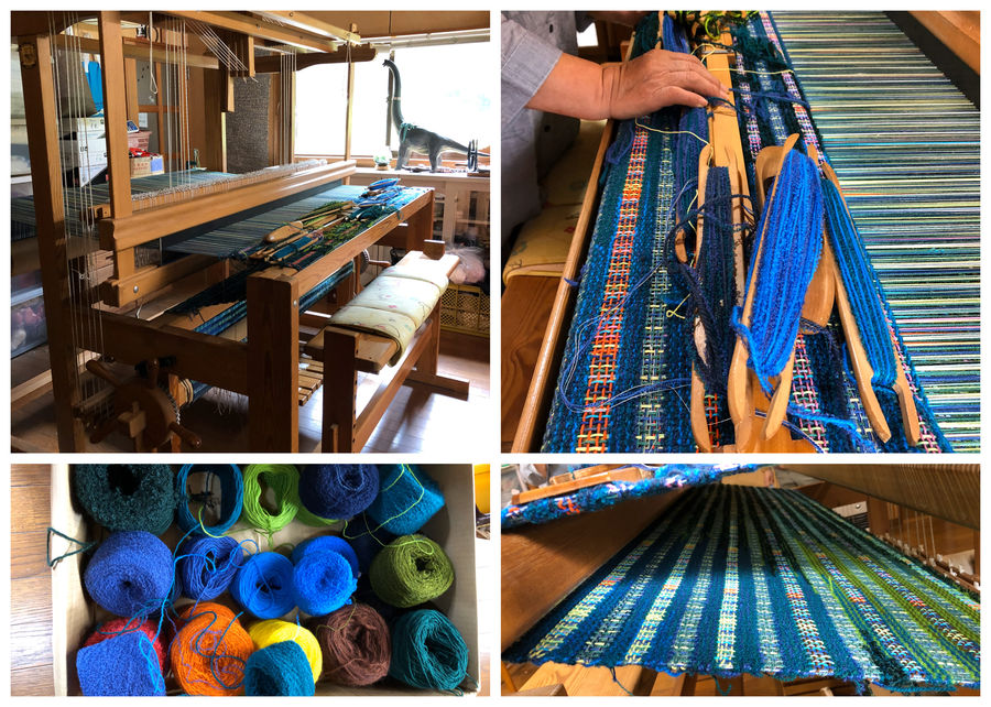 はた織り機はスウェーデン製で、左右腕を伸ばしても端に届かないくらい大きいです(゚o゚;;