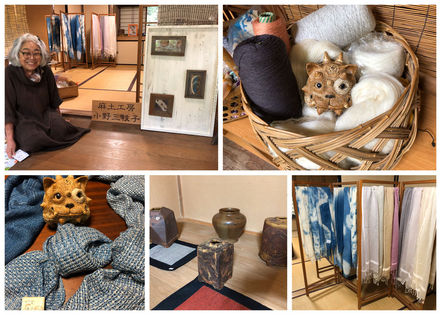工房の中には、竹の糸で編まれたふんわり優しいストールやベスト、陶芸作家であったご主人の小野洋さんの作品も並んでいます。