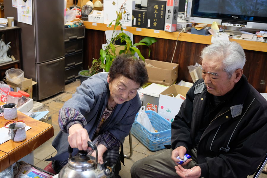 80歳になり、やりたいことはまだまだいっぱいあると言う。一度は断念したが、「他にはない美味しいハナビラダケを作ること」もその一つ。気さくに笑う仁久郎さんと、横で優しく支える奥さん。これからも夫婦仲良く、夢を追い続ける。